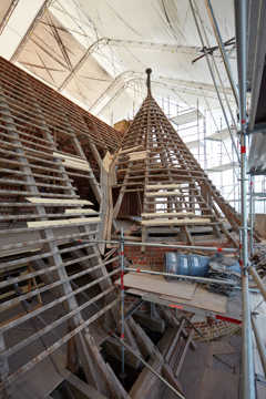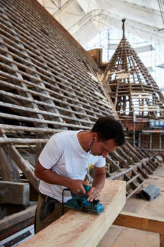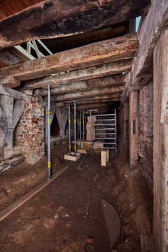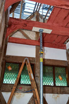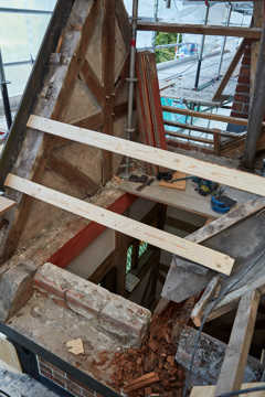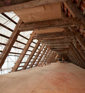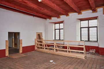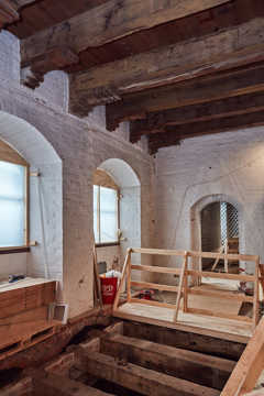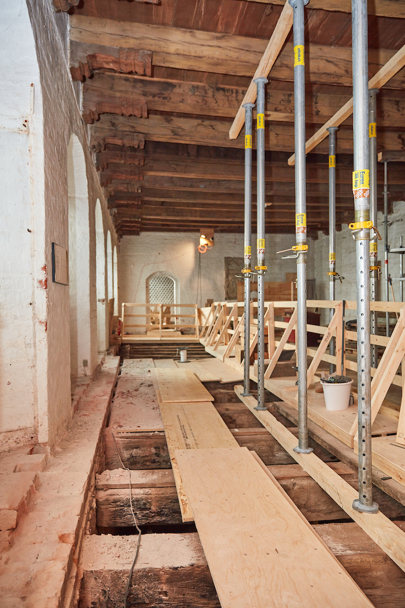 Forvitrede bjælkeender udskiftes, murværk restaureres, der lægges nye tagsten på den vestlige tagflade, de blyindfattede ruder genindfattes og males, vægmønstrene konserveres og der lægges nye gulve.